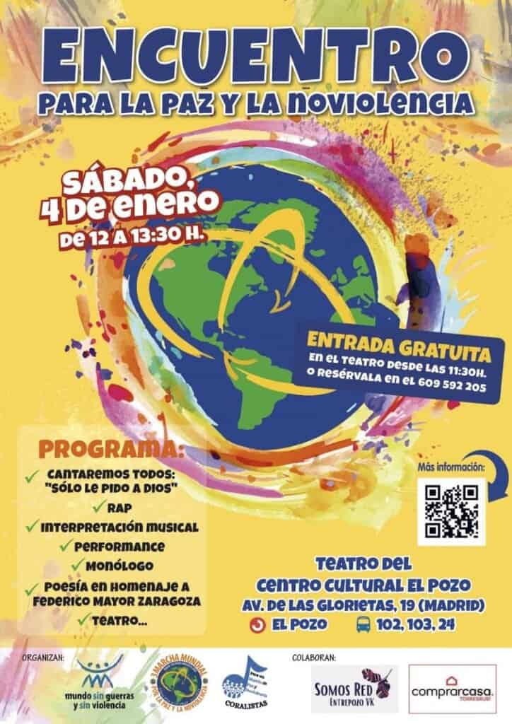 Al poco de conocer el nuevo formato de las Marchas Mundiales por la Paz y la Noviolencia, “La 4ª Marcha Mundial en Mi Ciudad”, se me apareció la posibilidad de “aterrizarla” a mi barrio, Vallecas. Ya nos hemos empezado a reunir para prepararla con tiempo y me he imaginado que sería un muy buen “laboratorio” achicar más todavía el radio de acción, a mi pequeño barrio, la zona de SanClaudio. Así pues, vamos a convocar con carteles y folletos en los locales comerciales con estas frases: “SanClaudio con la 4ª Marcha Mundial por la Paz y la Noviolencia”, ¡¡¡ VEN A PREPARARLA !!! Martes 3 de febrero de 18 a 19h en ComprarCasa, TorresRubí, calle San Claudio, nº 27